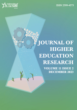 Dear Readers, We are pleased to present the Volume 11, Issue 2 (2023) of the Journal of Higher Education Research. This issue brings together a diverse collection of studies that address significant topics in education, healthcare, and well-being, showcasing research that is both relevant and impactful. This issue includes studies that highlight the importance of psychosocial factors in learning and practice. Cao and Espinosa examine how parenting styles influence study engagement among vocational nursing students, with self-compassion potentially mediating this relationship. Meanwhile, Yanling and Garcia shed light on the factors contributing to death anxiety among ICU nurses, emphasizing the need for tailored mental health interventions to strengthen the self-efficacy of ICU nurses. Similarly, Xing and Lachica highlight the growing demand for death education, pointing on the necessity of preparing nursing students for end-of-life care. From the perspective of patient care, Wang and Dolendo investigate how the fear of movement, or kinesiophobia, physical exercise and self-efficacy affect patients undergoing peritoneal dialysis, showcasing its impact on the quality of life of the patients. Chen and Cadena evaluate the effectiveness of a modified simulation tool to improve the skills of anesthesia nurses, emphasizing the value of hands-on training in healthcare. Mental health is another key theme in this issue. Li and Diva share the lived experiences of patients using nonpharmacological approaches to manage anxiety and depression related to chronic gastritis. This study proposes a model to assist the patients in developing appropriate behavioral adaptations and self-management skills and assess the effectiveness of strategies. Yang and Chua identify predictors of blood pressure in hypertensive patients, contributing to better hypertension management program. Lastly, two studies explore ways to enhance quality of life. Shen and Garcia investigate how square dancing improves sleep and well-being among middle-aged and older women, highlighting the importance of community-based physical activities. Song and Lachica report findings on the role of meaning in life and coping styles in supporting breast cancer patients undergoing chemotherapy. We are deeply grateful to our authors for their valuable contributions and to our reviewers for their time and expertise in refining this issue. A special thanks to the staff and Dr. Lota Largavista, Director of the Publication and Engagement Office, for their unwavering support in producing this volume. We hope you find this issue thought-provoking and useful in your professional practice and academic endeavors. Sincerely, JOVAL N. MARTINEZ Editor-in-Chief
