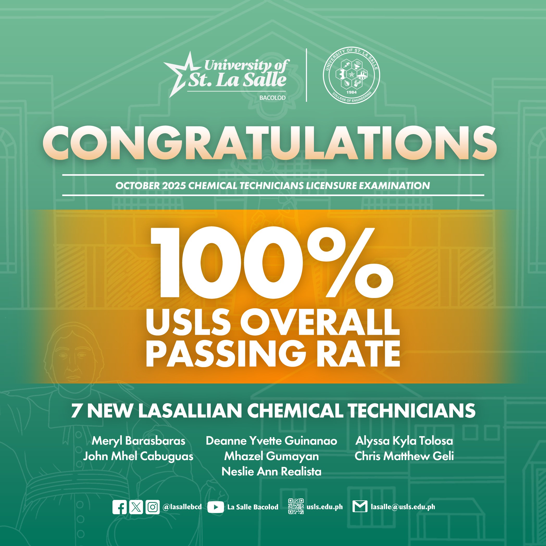 The University congratulates the new Lasallian Chemical Technicians and the College of Engineering for their continued dedication to academic excellence and to preparing students to thrive in the professional field.