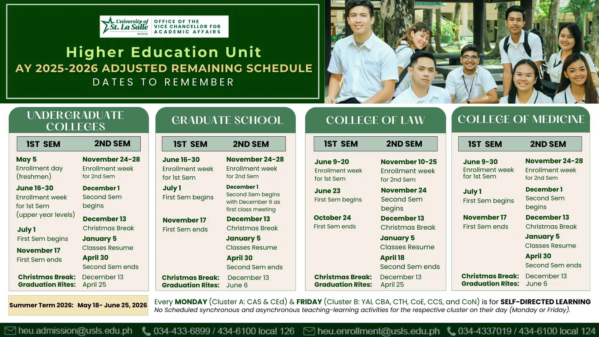 For any inquiries or extra info, follow the USLS Bacolod - Office of the University Registrar Facebook page.